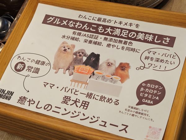 3月31日までの期間限定で、飼い主も一緒に飲めるサイプレス「愛犬用 癒しのニンジンジュース」の試飲会も開催されています。