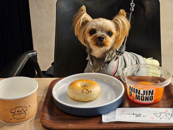 そして、3月20日から4月6日までの期間限定で、春らしい装いの特別メニューが登場しています。スイーツベーグル「桜」(アイス&三色団子付き)と、ドリンク(春ソーダ「桜」または、抹茶ラテ「桜」)、ワンちゃん用の桜ベーグルと豆乳などを使ったドリンクのセット販売があります。愛犬と一緒に春色のスイーツを味わえます。単品での販売もあるので、ペット連れでない方も楽しめますよ。