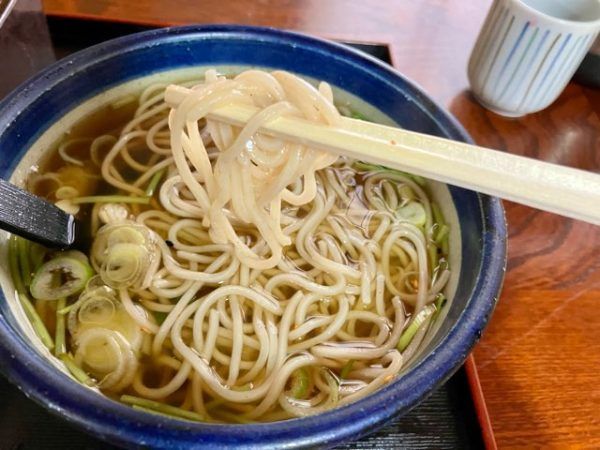 麺は細麺でつゆがよく絡んでおいしいです。たっぷり一人前、これだけでお腹がいっぱいになります。