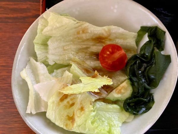 付け合わせのサラダはあっさり和風味。かつ丼を食べているときにさっぱり感を味わえます。