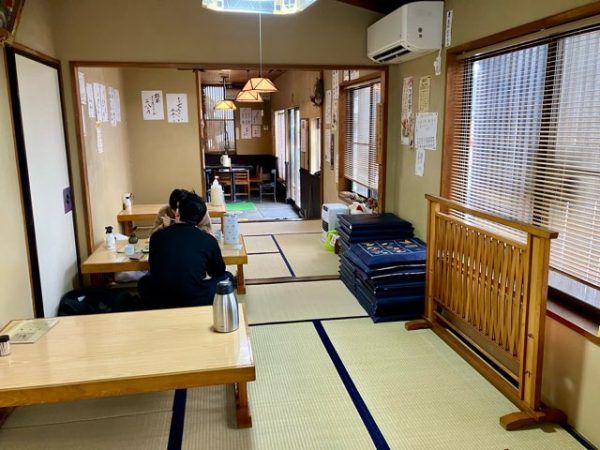室内はゆったり。入口の右側にはテーブル席。左側はお座敷になっています。
