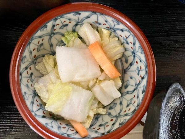 香の物は家庭の味。塩味が少なくお蕎麦を食べているときの箸休めにピッタリです。