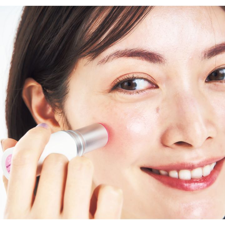 出先で保湿効果だけでなく、血色を足したいときにスティックでトントンするだけで色づき、指を汚すこともなく楽チン。眉頭や頰高部分のカサつきにはハイライトをオン。