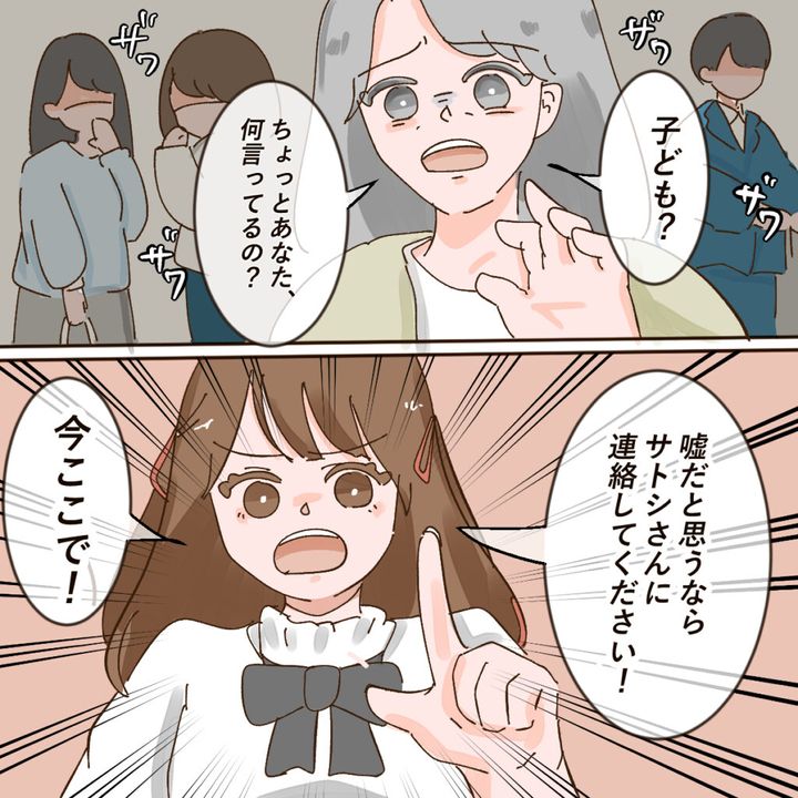 「子ども?ちょっとあなた、何言ってるの?」ケイコさんがそうたずねると、「嘘だと思うなら、サトシさんに連絡してください!今ここで!」自信満々に話す女性の声に気づいて、お客さんたちがひそひそと話す声が聞こえてきました。