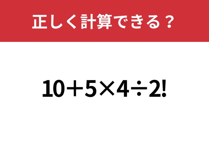 びっくりマークはどうやって計算するの!?「10+5×4÷2!」正しく計算できる?
