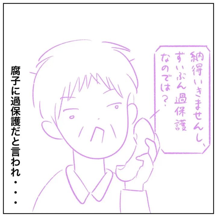 先生のありえない対応に抗議の電話をしたまるさんのお母さんは、先生から「過保護」と言われました。