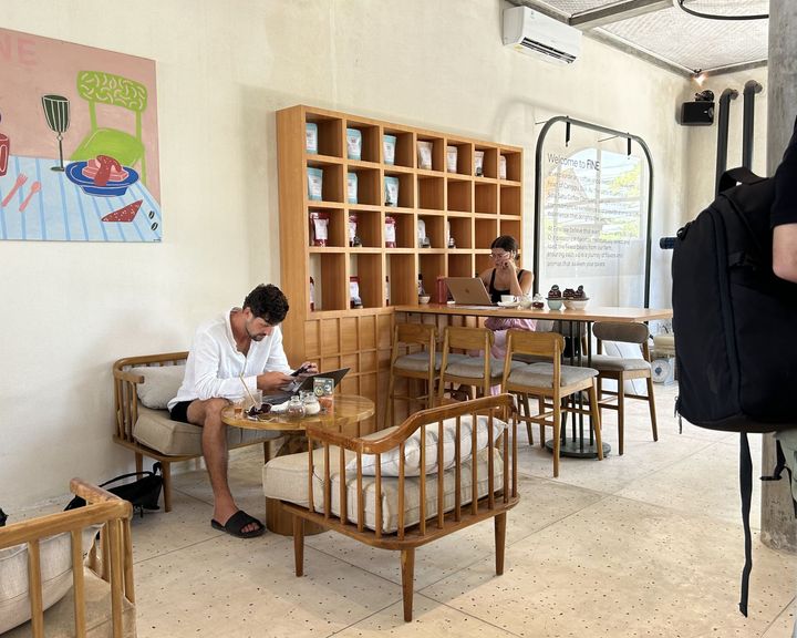 チャングーで過ごすワーケーションの一日は、お気に入りのカフェ「nüde cafe Berawa」で作業をするところからはじまる。