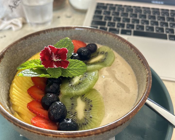 ココナッツたっぷりのアサイーボウル。南国のフルーツだからか、特に甘く感じる。