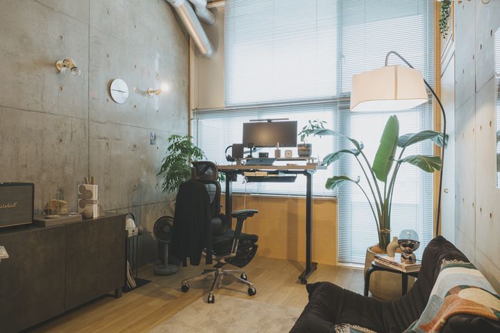 「完全に好きなものを詰め込んだデスクスペースになっています。自分自身コンクリート打ちっぱなしの部屋もそうなんですけど、取り入れるアイテムもコンクリートの素材や色合いが好きで多くなっています」