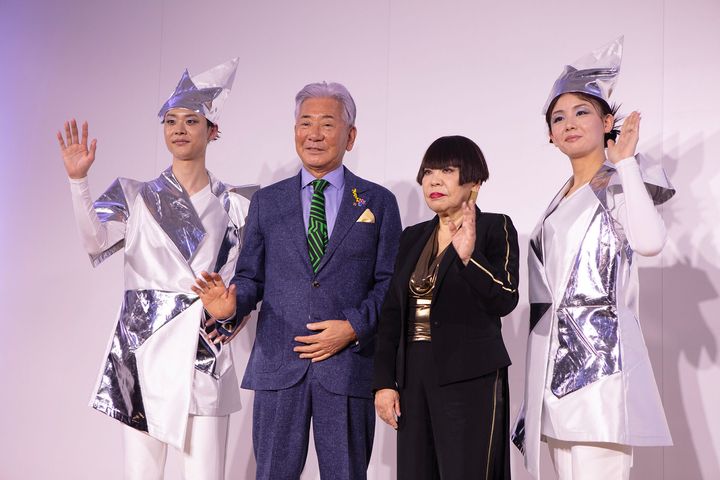 タカラベルモントの万博展示ブーススタッフユニフォームは、デザイナーのコシノジュンコが担当。ブースの展示テーマ「量子飛躍する美の世界」の立体造形をモチーフとし、ユニフォームと空間が一体となって完成するデザインに仕上げられている。