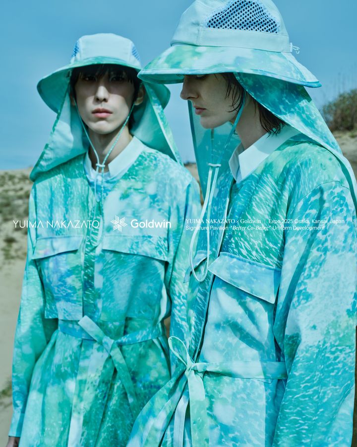 シグネチャーパビリオン「Better Co-Being®」のアテンダントユニフォームは、ファッションデザイナーの中里唯馬が、ゴールドウインと共同で企画・製作を担った。屋外での着用を前提に、通気性や防水性、動きやすさ、酷暑や風雨といった環境に対応する機能性を備える。