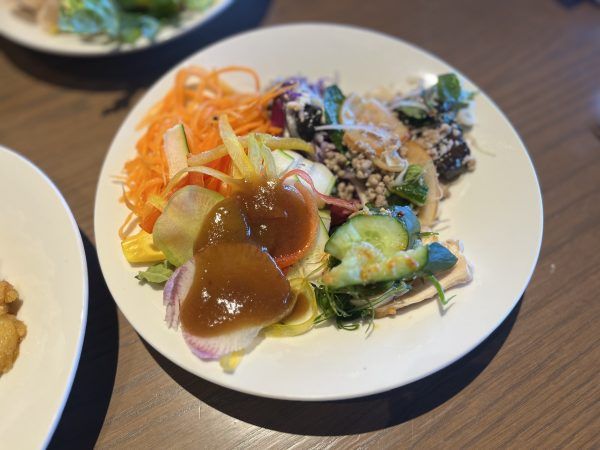 ドレッシングもニョクマムを使っていたり、マンゴーなどのフルーツを使用していたり、南国の味わいが楽しめます。 (スパイシーセサミドレッシング、タマリンドとマンゴーのドレッシング、ヌクチャム(魚醤と柑橘のドレッシング)