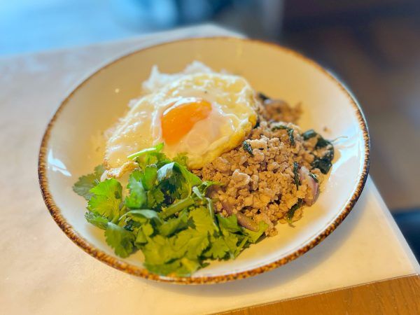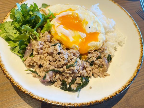 メインは、ガパオライス、カオマンガイ、本日の厳選カレー(+500円)、トムヤムクンヌードル(+500円)から好きなモノをチョイス。私はガパオライスにしました。