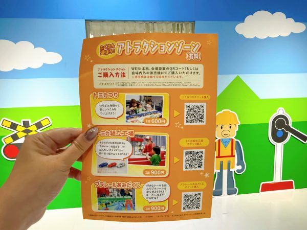 イベントでは、見るだけでなく実際に遊べる体験コーナーもあります。アトラクションチケットは、会場内の券売機もしくは二次元バーコードにて購入することができます。