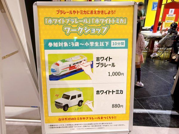 また、特設エリアで「ホワイトプラレール」「ホワイトトミカ」ワークショップも開催中!こちらは「トミカ・プラレールフェスティバル」の入場チケット不要で参加できます。自分だけのトミカ・プラレールが作れますよ。 (※参加対象は3歳~小学生以下。1日の参加枠には限りがあります。)