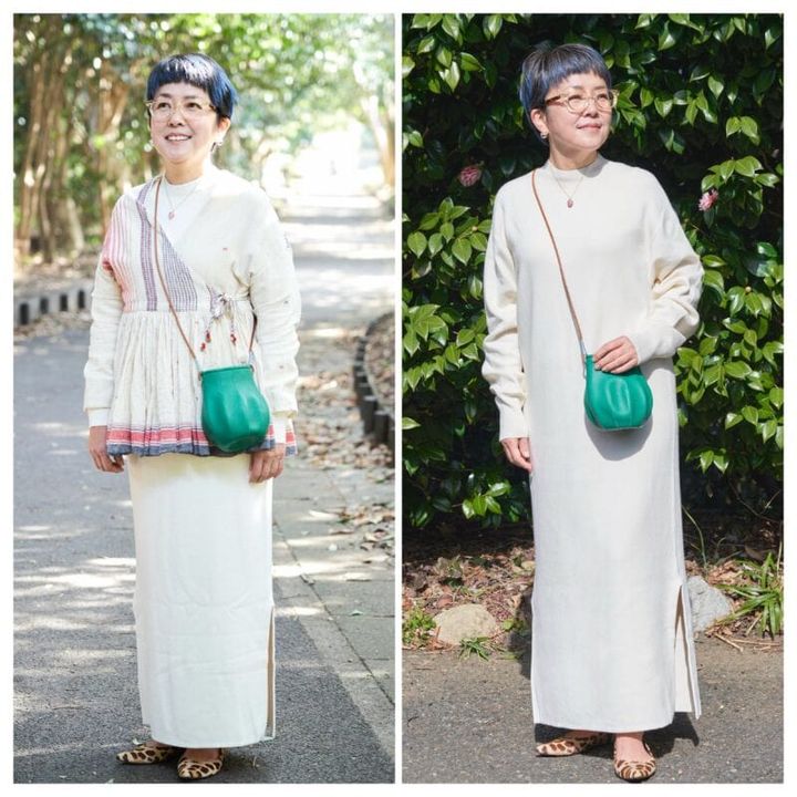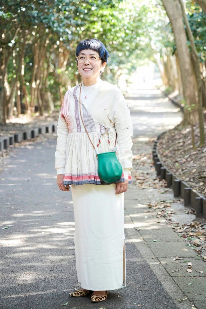 今週は「トゥモローランド」ライフスタイル部門のバイヤー、増田朋子さん(59歳/身長158cm)。仕事でプライベートで、世界各地を旅する増田さん。旅先でヴィンテージアイテムや、ジュエリーなどを見つけるのが楽しみだそう。金曜日はインドのラバリジャケットにエルメスのポシェットをアクセントにした白の装い。世界の素敵なものを取り入れたセンスに注目です。
