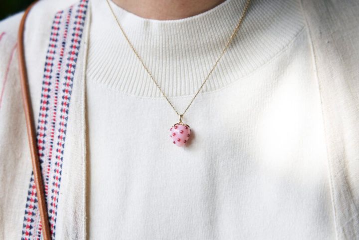 「ちょっと子どもっぽいかな?」と増田さんははにかみますが、トルマリンとルビーをデザインしたペンダントトップは、LAの人気ブランドのジュエリー。