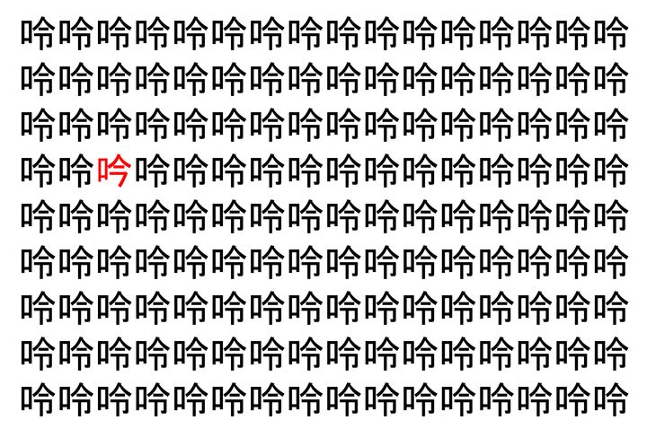 画像の中には、「呤」という漢字が縦に9行、横に16個並んでいます。 全部で144個となりますが・・・、そのうち1つは「異なる漢字」となってますよ!!