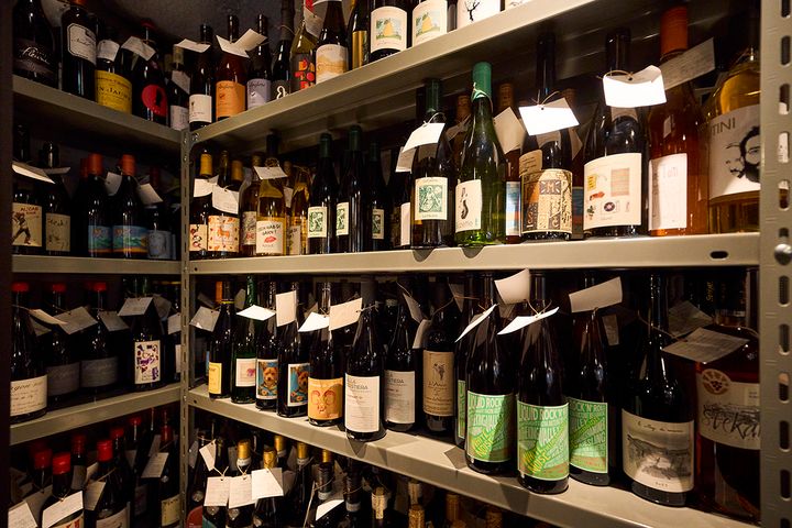 「GRIN」では、ナチュールワインも豊富に取り揃えています。店内奥にあるワインセラーには、常に80種類ほどを常備。ボトルワインを注文する場合は、ここに入ってエチケットを見つつ選ぶこともできるそうです。