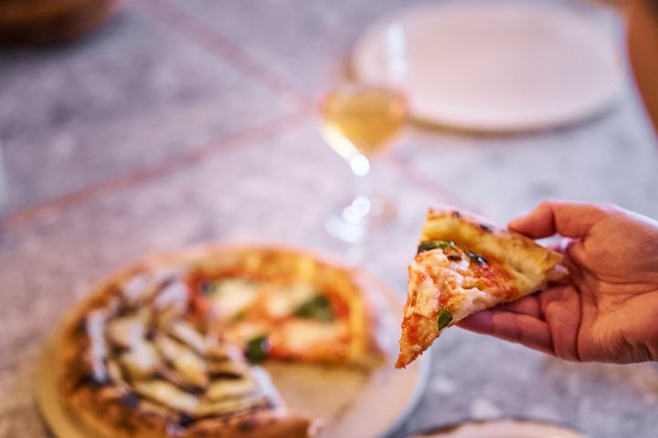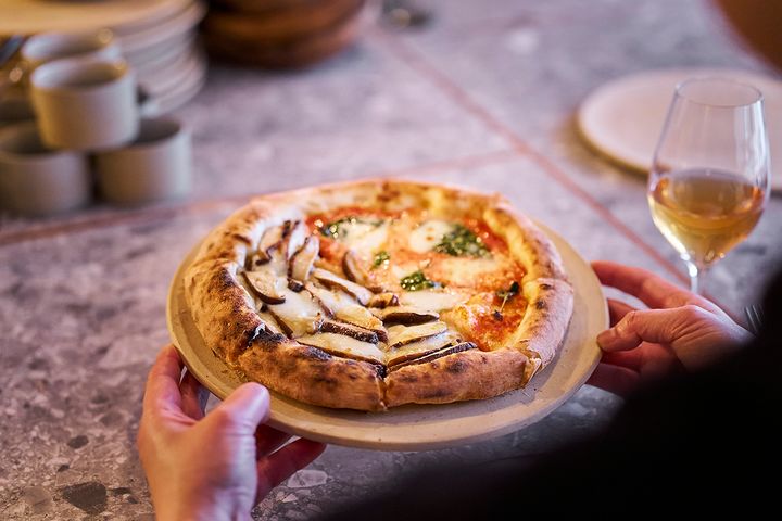ソロおすすめPoint ピザは鮮度が命。「麺類より、じつはピザ。焼き上がってすぐに食べたほうが絶対においしいです」と、シェフの佐々木さん。ピザのおいしさとだけ向き合って、一番おいしいタイミングで。ひとりだからこそ気兼ねなく、じっくりと素材のうま味と生地の食感を楽しめます。一見ボリュームがありそうですが、そのおいしさにひとりでも完食。ワイワイおしゃべりしながら食べるピザもいいけれど、具材の焼きたつ香りに、とろ〜りのびるチーズに。ひとりだからこそ楽しめる、一番おいしい瞬間を味わって。