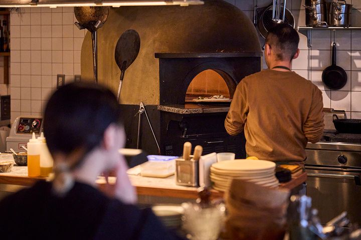 カウンターから一望できるキッチンでは、シェフが手際よくピザを作っている様子をライブで見ることができます。ひとりだからこそ集中してピザができる様子を眺められそうです。