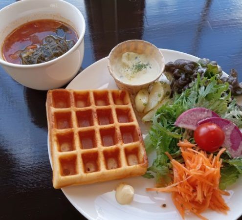 ワッフルは米粉ワッフル。もちもち感がたまりません‼米粉だからかお食事系にしても違和感ゼロでした。このあとデザートも行こうと考えていたものの思ったよりボリューミーでこの日はやめておきました。