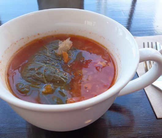 深めのスープカップにたっぷりと入ってます。野菜の甘味が溶け込んでいるやさしいお味。ロールキャベツが見えるように撮らなかったことを後悔…外が寒かったので温かいものを口にしたらほっとして写真を撮ることを忘れてしまいました…。