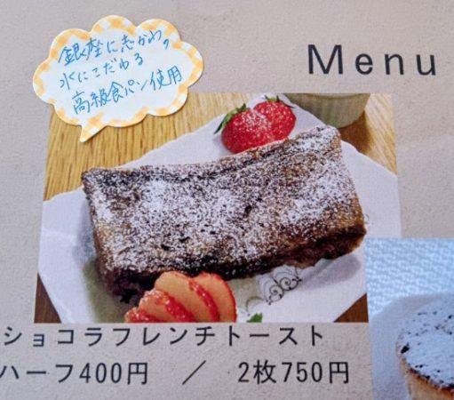 フレンチトーストです。私、好きなんですよ‼↑のショコラバージョンはバレンタイン時季のメニューでした。先月はホワイトショコラだったんです。4月はどんなフレンチトーストなのか気になるところ。