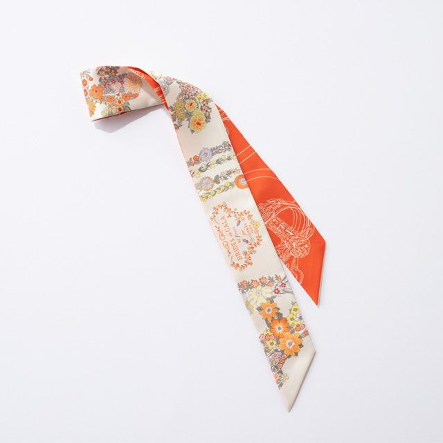 オシャレ賢者にもファンが多いバンダナ柄の新作。馬具をバンダナパターンにアレンジした一枚は、柄の美しさとシルクの上質さが際立ちます。配色もシックで合わせやすく、シンプルなコンサバコーデをリッチに更新できます。手首に巻いたりするのもおすすめです。