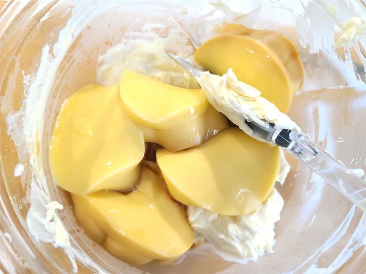 3. 2にプリンを入れてよく混ぜ合わせます。