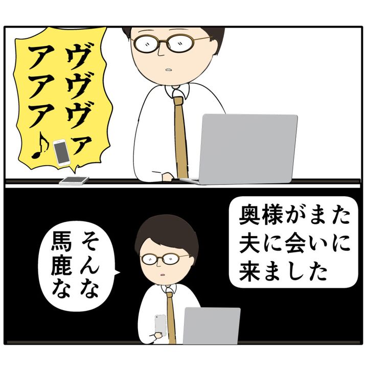 めいさんは、すぐにジュリ実さんのご主人に『奥様がまた夫に会いに来ました』とメッセージで報告しました。それを見たご主人は「そんな馬鹿な」と信じられない様子です。