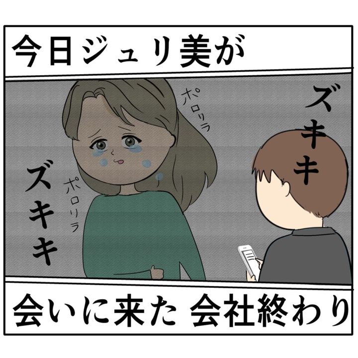 『今日ジュリ実が会いに来た 会社終わり』と打ち込みながら、ろみ緒さんは涙で走って追いかけてくるジュリ実さんを思い出して心がズキズキしているのでした。