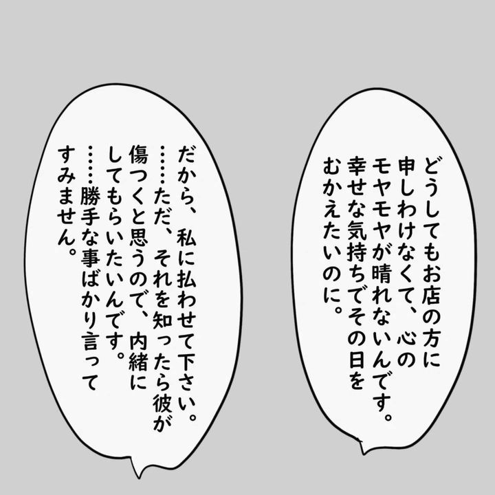とはいえ、このままでは結婚式を気持ちよく迎えることができそうにありません。そこで、ずんさんは密かに行動を起こします。ずんさんは、一人でレストランを訪れ、オーナーと話をします。