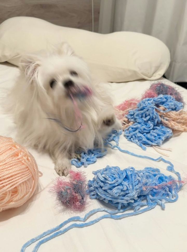 3. 愛犬家がつぶやいた「編み物ができない理由」に9千いいね「気になっちゃうね」「わんぱくガール」