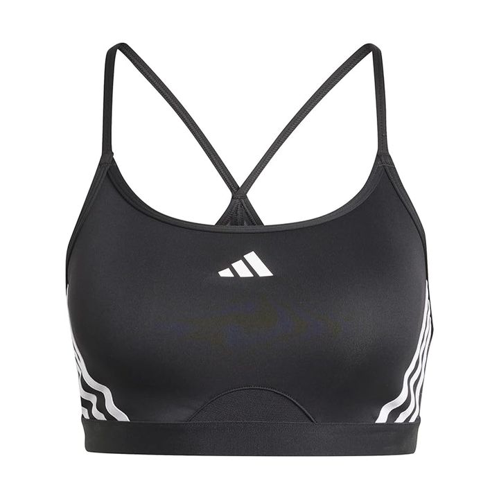 吸湿性と通気性に優れた素材で、ヨガやトレーニングウエアに最適なアディダスADIDAS)の「スポーツブラ Aeroreact」。背中が大きく開いたデザインと細いバックストラップが、スポーティーさにフェミニンなエッセンスをプラス。取り外し可能なパッドは滑り止めグリップドット付きで、動いてもズレにくい設計に。リサイクル素材を70%以上使用し、環境にも配慮しているところもポイントだ。