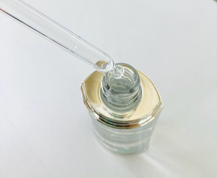 スポイドの目盛り2回分が鼻とあごに使う量の目安。スポイド全量4回分が全顔クレンジングの適量。水を含むと溶解のパワーが格段に落ちるので、必ず顔と手をぬらさず使用。個人的には朝の洗顔に使うのがお気に入り。
