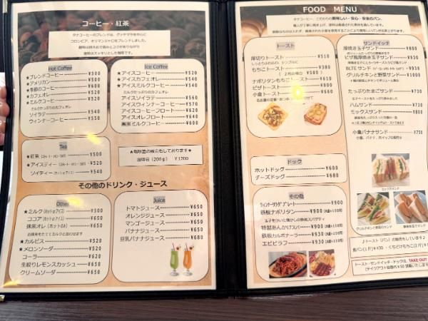 フードメニューも充実しており、トースト・サンドイッチ・ホットドッグに加え、鉄板スパゲティやピラフなど、喫茶店ならではの味が楽しめます。