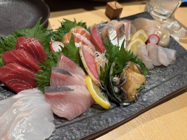 活あわび入り旬魚刺身8点盛り!市場直送の新鮮魚介!その日のおすすめなのでラインナップは変わるかもしれませんが、ご了承ください。(画像は3人用です。)