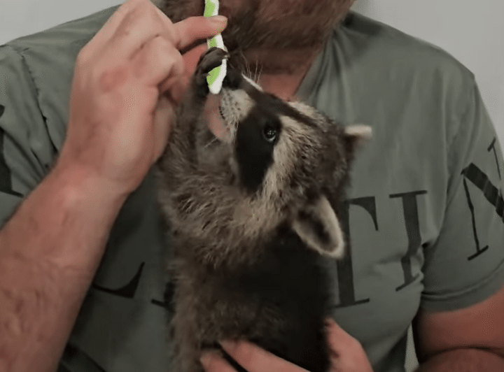 3. 「それなに?見せて見せて!」歯ブラシに興味津々なアライグマさんがグイグイ接近