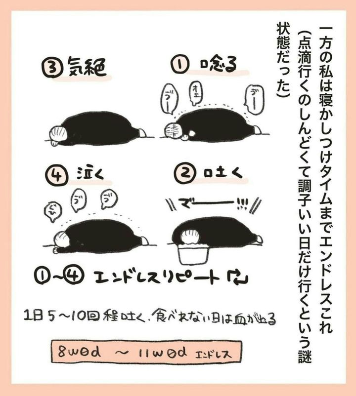 つわりがピークを迎え、ベッドとトイレの往復生活が始まった、ほかほか命さん。ある日、ママの体調を気遣ってくれた長男に対し、ほかほか命さんはひどいことをしてしまいます。激しく後悔した、ほかほか命さんは…。ほかほか命(@hokahokainochi)さんが第二子の妊娠で、重いつわりに悩まされた体験談『TSUWARI』をダイジェスト版でごらんください。