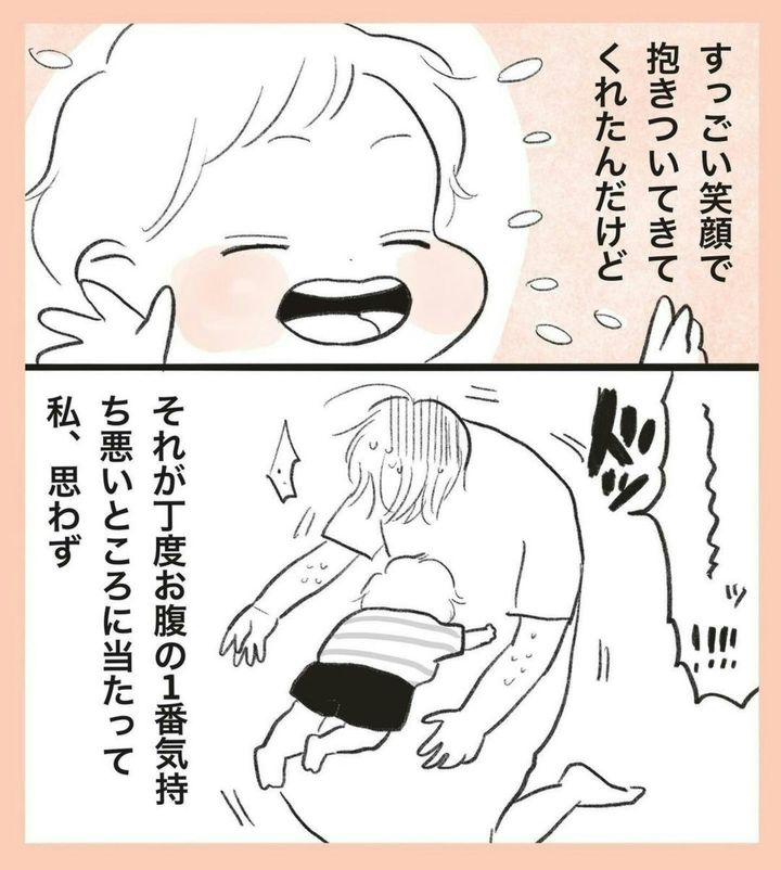 しかし、この時、意図せず息子がおなかにぶつかってしまい、ほかほか命さんは息子をどなってしまいます。お互いにお互いを思いやるなかで、起きたできごと…。後悔をするほかほか命さんの気持ちが伝わってきますね。