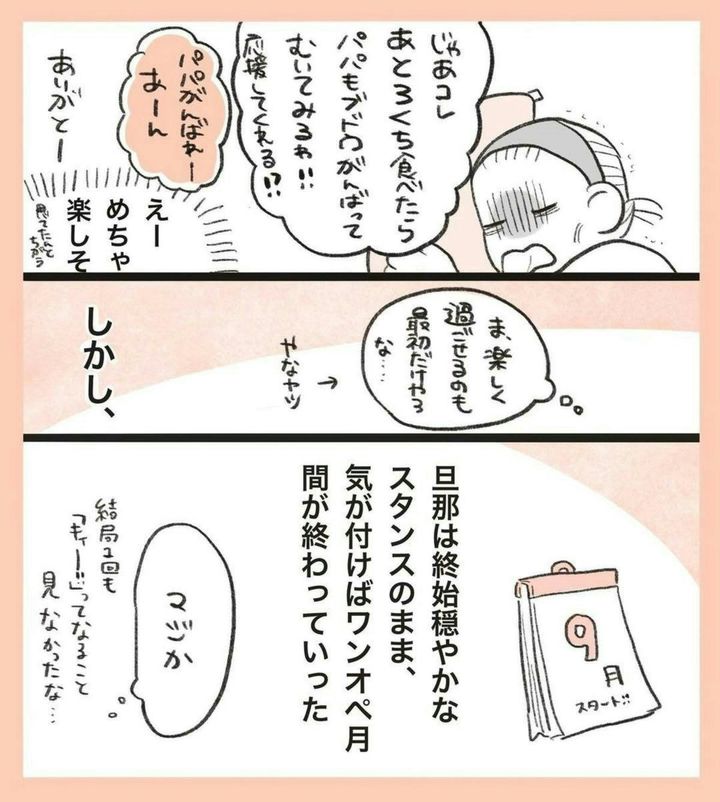 このあと、妻の限界を理解した夫は、ついにワンオペ育児を始動します。