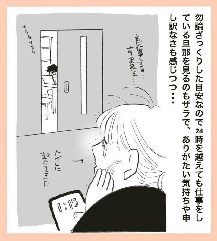 重いつわりに耐えることしかできない、ほかほか命さんに代わり、育児や家事のすべてを担当することとなった夫。夜遅くまで仕事をしながら、ワンオペで育児や家事を回すのはとても大変だったことと思います。