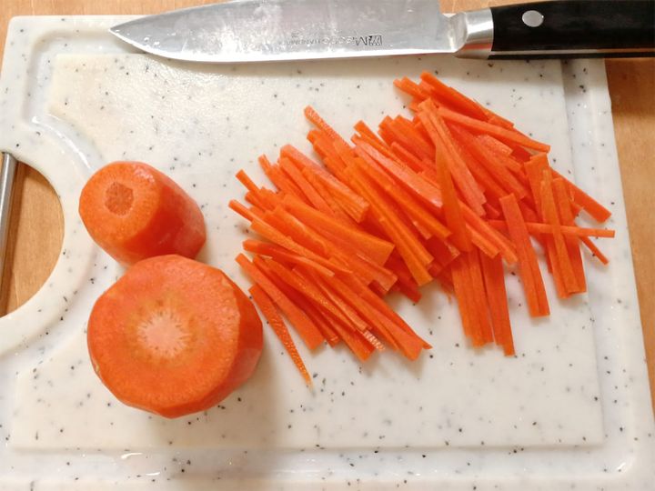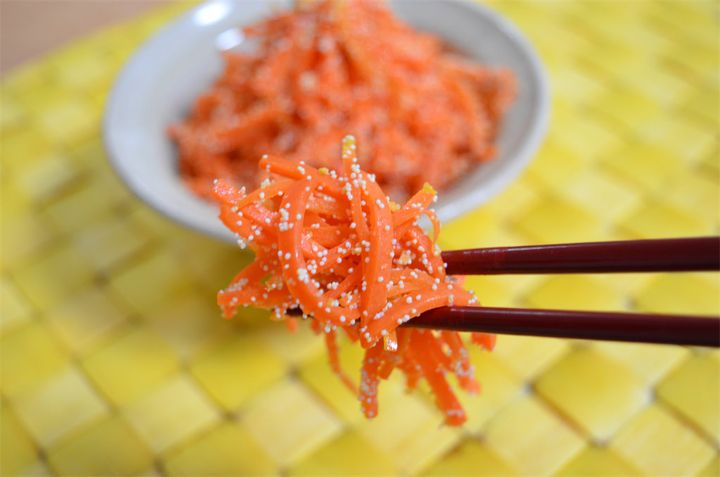 にんじんの太さによって食感が変わりますので、お好みの細さで試してください。