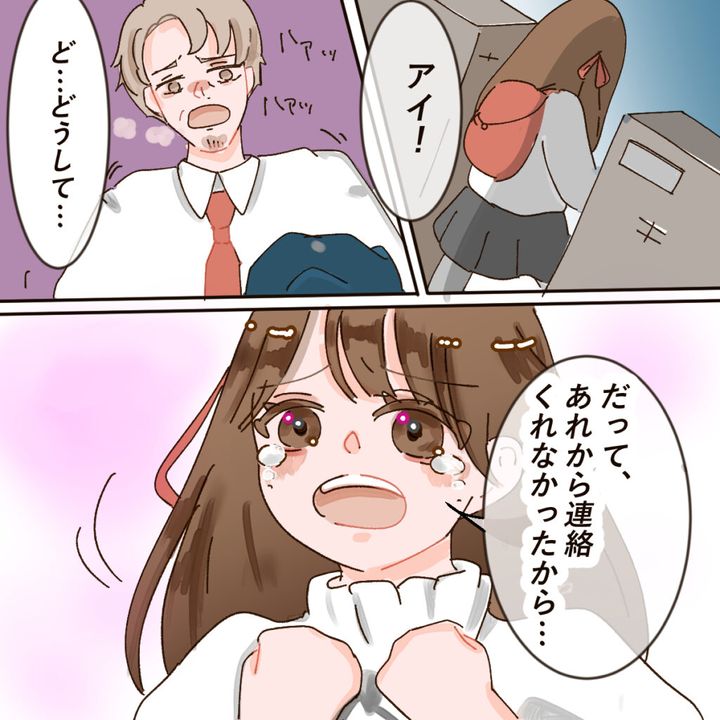 ケイコさんがアイさんを家に案内していると、「アイ!ど・・どうして・・」サトシさんの言葉に、「だって、あれから連絡くれなかったから・・」と答えると、