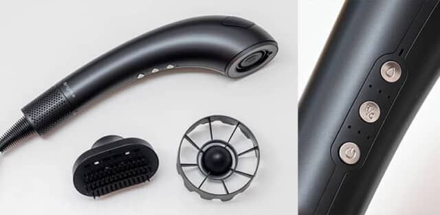 丸い「 Boost アタッチメント」で風が広がり、より効率的に乾かせます。ブラッシングも同時にできる「 straight アタッチメント」は、片手でブローができる優れモノ。