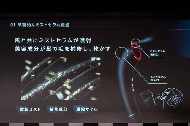 ▲ナノ化されたミストで髪の深部までしっかり潤う