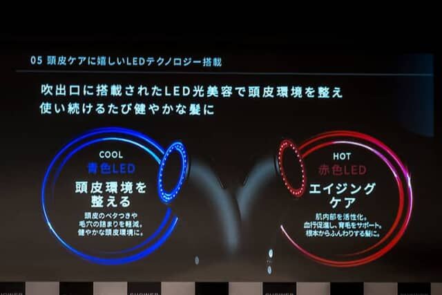 吹き出し口に搭載したLED光美容で、頭皮の環境を整え、ドライしながら頭皮ケアもできる優れた機能を備えます。