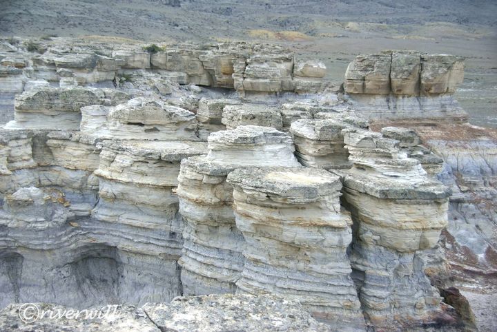 それらの岩は、かつてここが海の底だった頃、アンモナイトや貝の死骸などを核として海水中のカルシウムと結合、真珠の如く大きく成長し、やがて地殻変動により地上に露出、風雨にさらされ現在の形になったと考えられています。