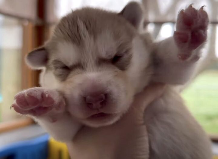 これが世界かぁ! 生まれて初めて目を開けたハスキー子犬さん